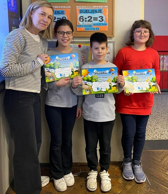 Dana 11. veljače još je jedna generacija mladih polaznika uspješno završila tečaj. Marcela i Borna svladali su 3. stupanj, dok je Jelena, koja je već dugi niz godina dio Aloha programa, došla do impresivnog 7. stupnja, te je od završetka cijelog programa dijeli još samo osmi. U posljednjim je ciklusima učila decimalne brojeve, dijeljenje, razlomke i potencije, čime je dodatno ojačala svoje matematičko znanje i sigurnost.