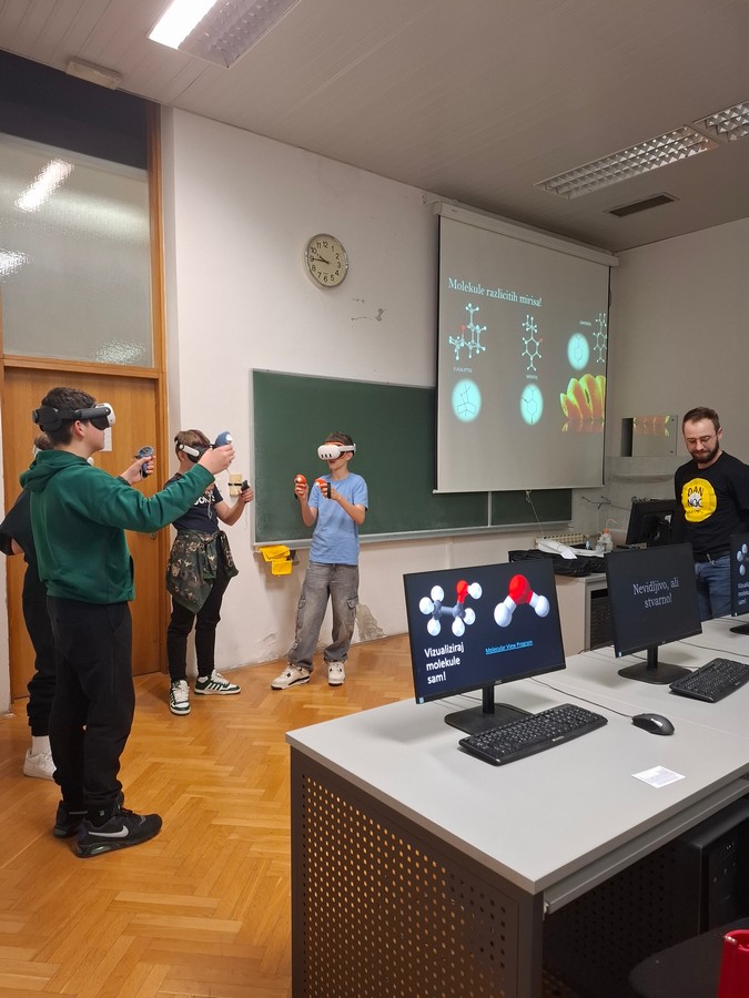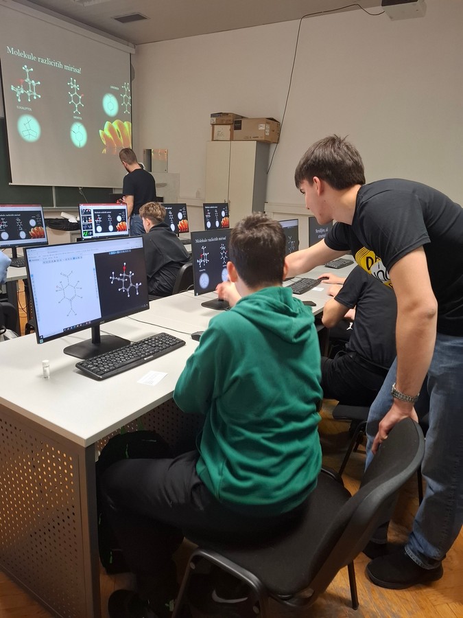 Učenici 7.a razreda, Kaja, Borna, Luka i Vid, sudjelovali su 17.4.2026. godine na manifestaciji Dan i noć na PMF-u u pratnji učiteljice kemije. Malo je reći da je dan bio ispunjen i zabavan. Krenuli smo s računalnom kemijom i vidjeli nevidljivo. Nastavili sa svijetom kemije kroz paletu boja, pokusa i eksplozija. Malo odmorili uz ručak u studentskoj menzi i pravili se da smo studenti. Onda smo postali znatiželjni i izvan plana malo zavirili u geologiju, mineralogiju. A pravi vatromet za kraj bila je radionica o osnovama pirotehnike. Sve u svemu, vraćamo se sigurno slijedeće godine.